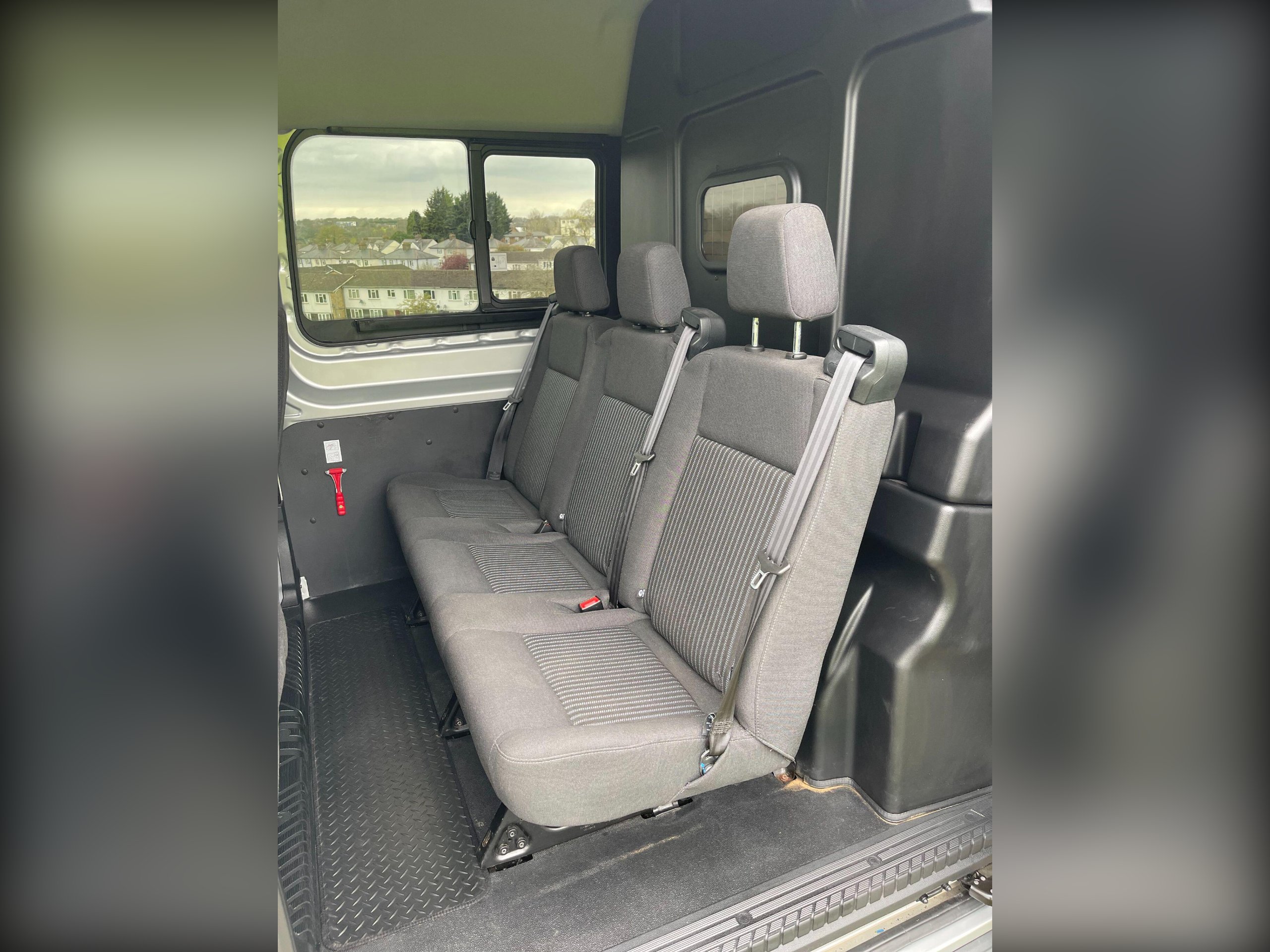 - Second Row- Removable Triple Wide Seat - Moulded Bulkhead with Window Behind 2nd Row Seat